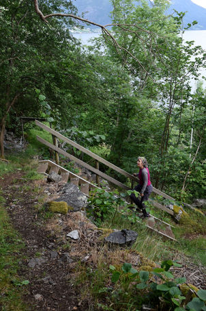Park the car by the main road. There is about 250 meters to hike on a trail through a cherry garden to the summer house. The trail is fairly steep and you have to walk several wooden stairs. You have to be reasonable fit to walk the trail, and pack your luggage in a backpack to carry it down to the unique summer house.